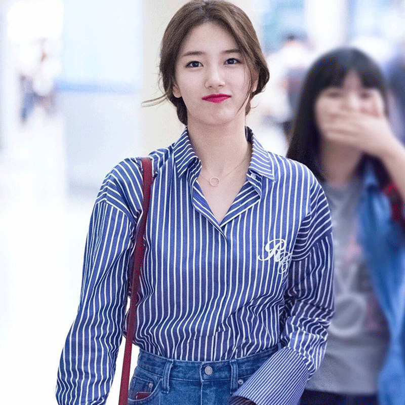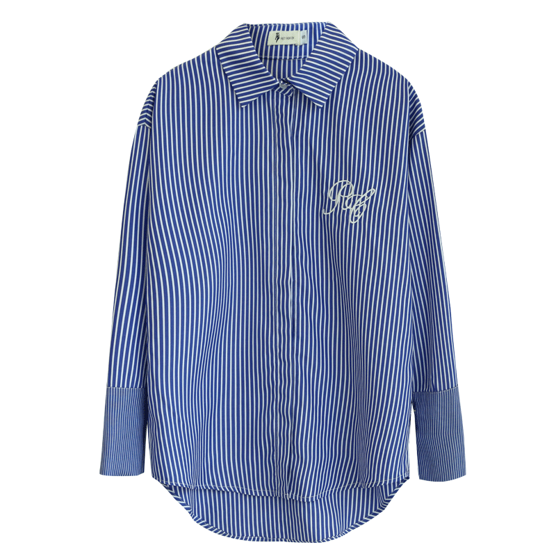 Special Cabinet 2021 Spring New Blue Vertical Striped Shirt Woman Han Edition Design Sensation Niche Light Cooked Shirt Blouses