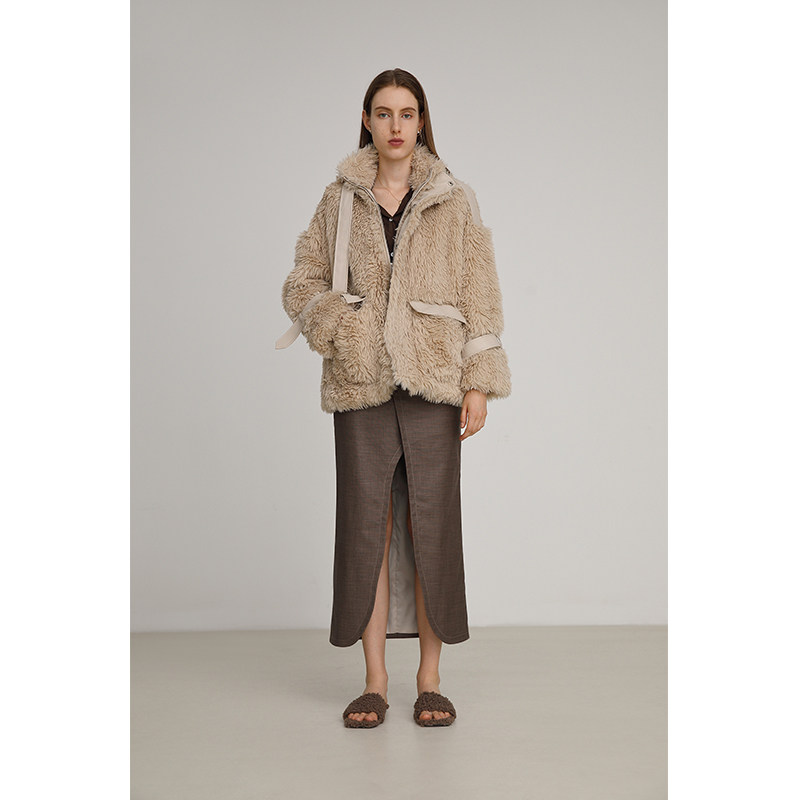 Unspoken2020 autumn and winter new imitation lamb fur wool one-piece loose velvet thickened chic coat female