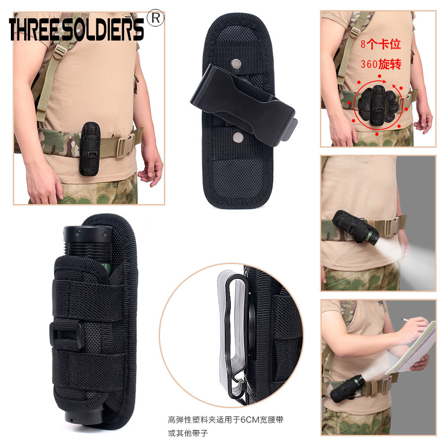 Outdoor waist hanging multifunction elastic 360-degree rotating flashlight bag flashlight protective sheath Tactical MOLLE accessory bag