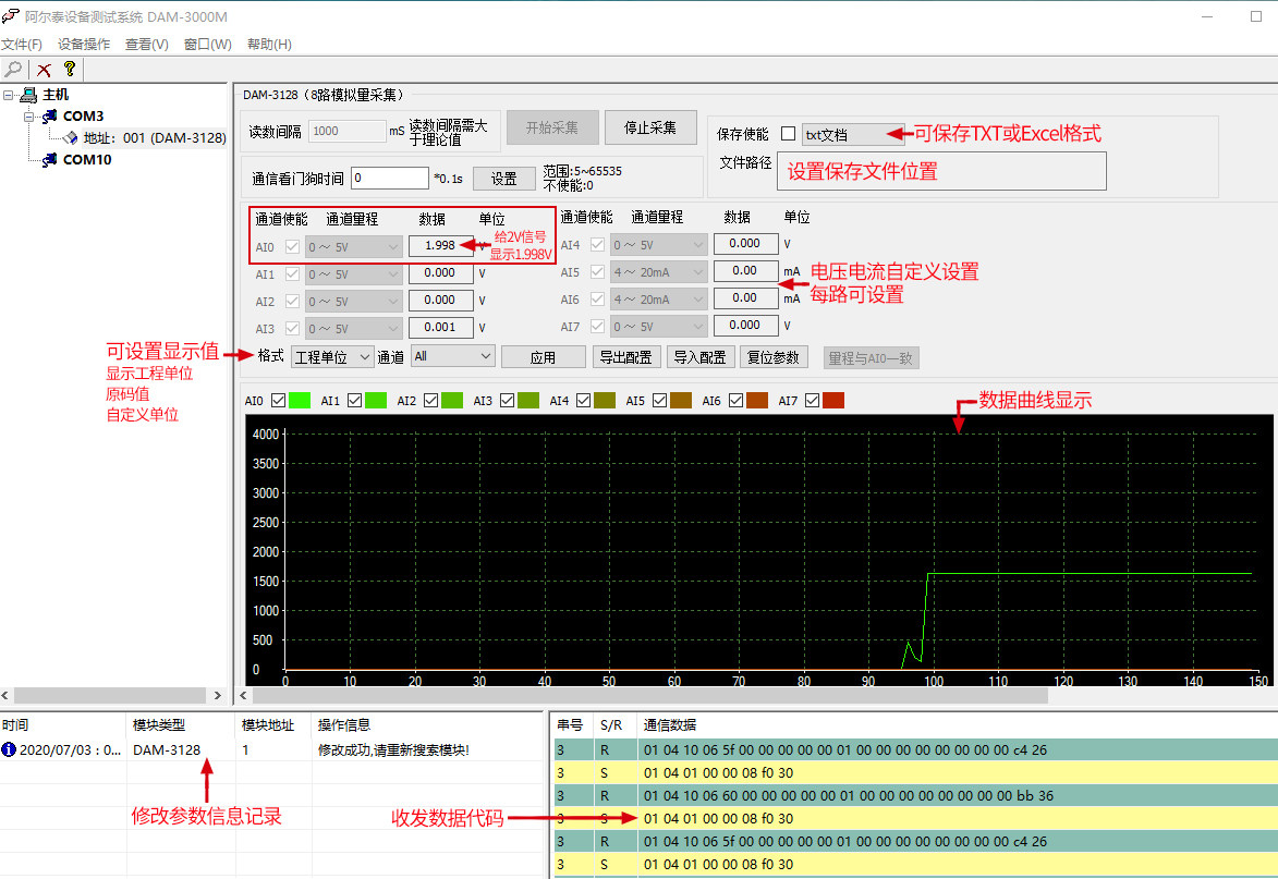 DAM3128 analog to 485 analog acquisition module 0-5V voltage and current 4-20ma input Modbus
