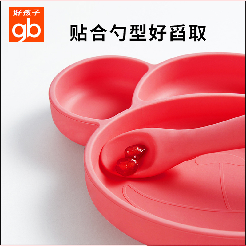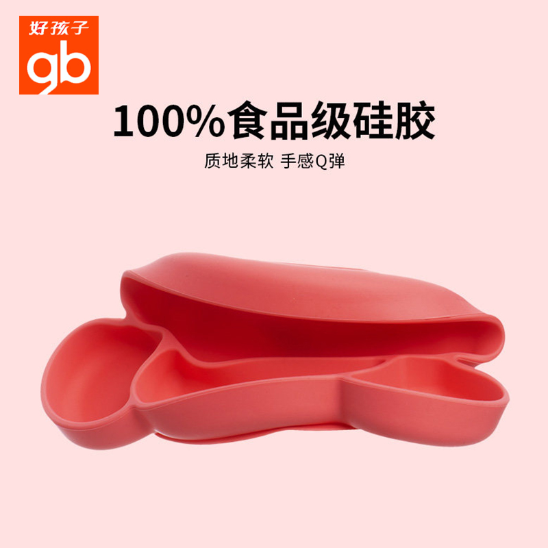 gb Good child baby children silicone plate One-piece smiley placemat Suction cup bowl Drop-proof baby split cutlery