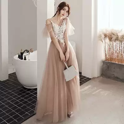 Bridesmaid 2021 new autumn sister group fairy temperament long version dress dress dress female banquet wedding thin evening dress