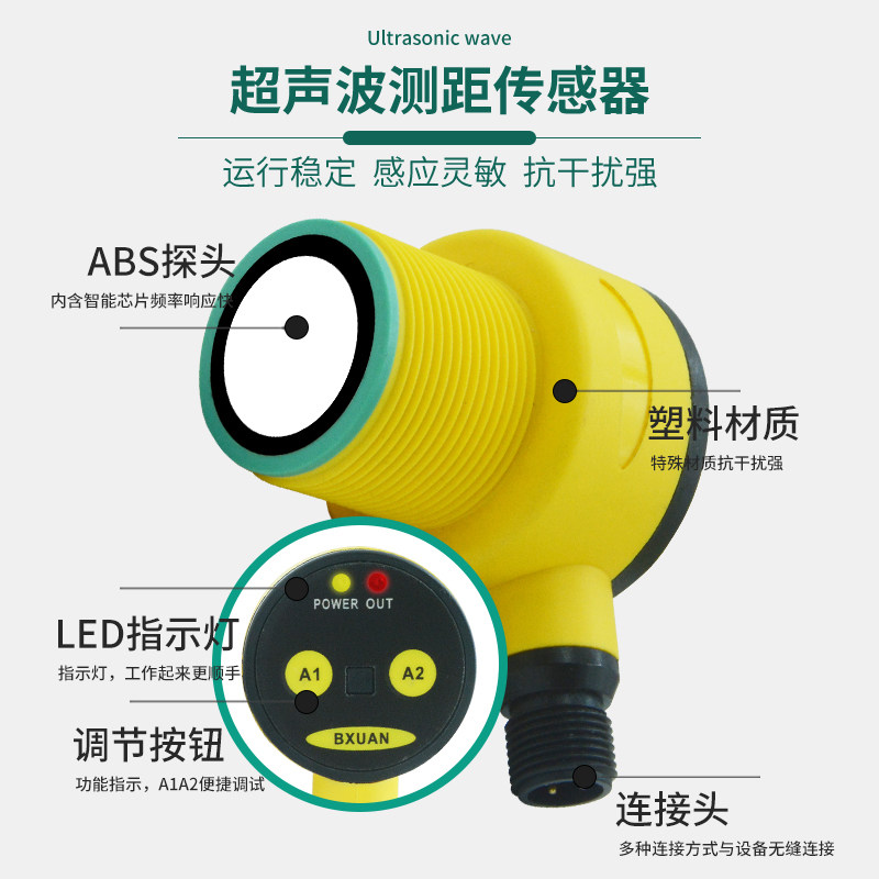 Ultrasonic sensor liquid level water level detection sensor proximity switch detection distance 1 meter adjustable 0-10V