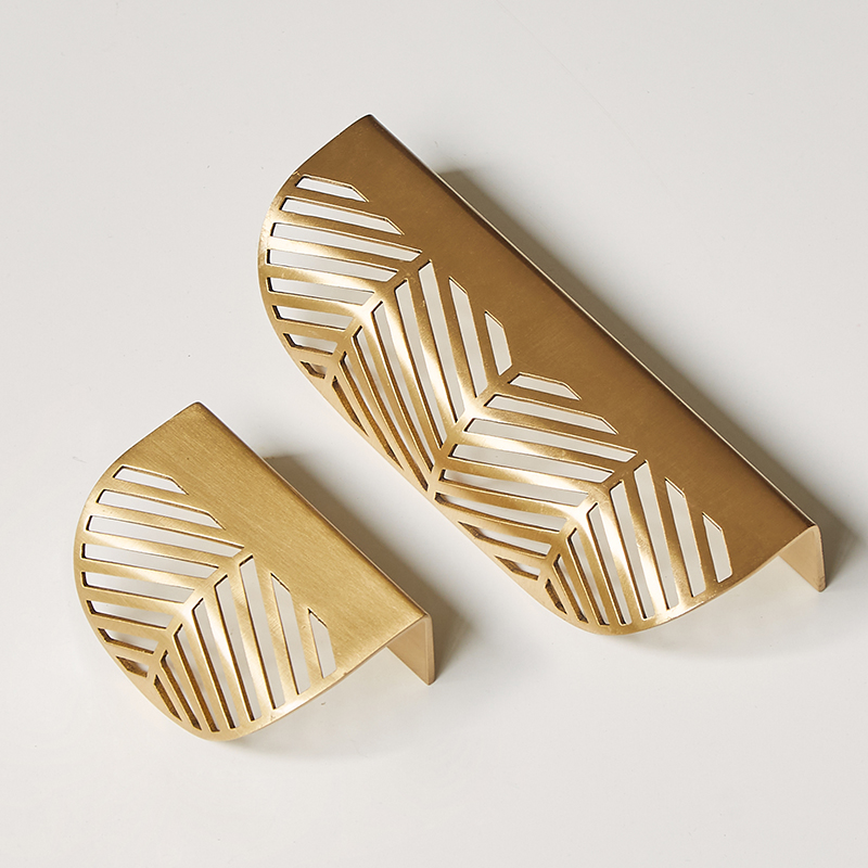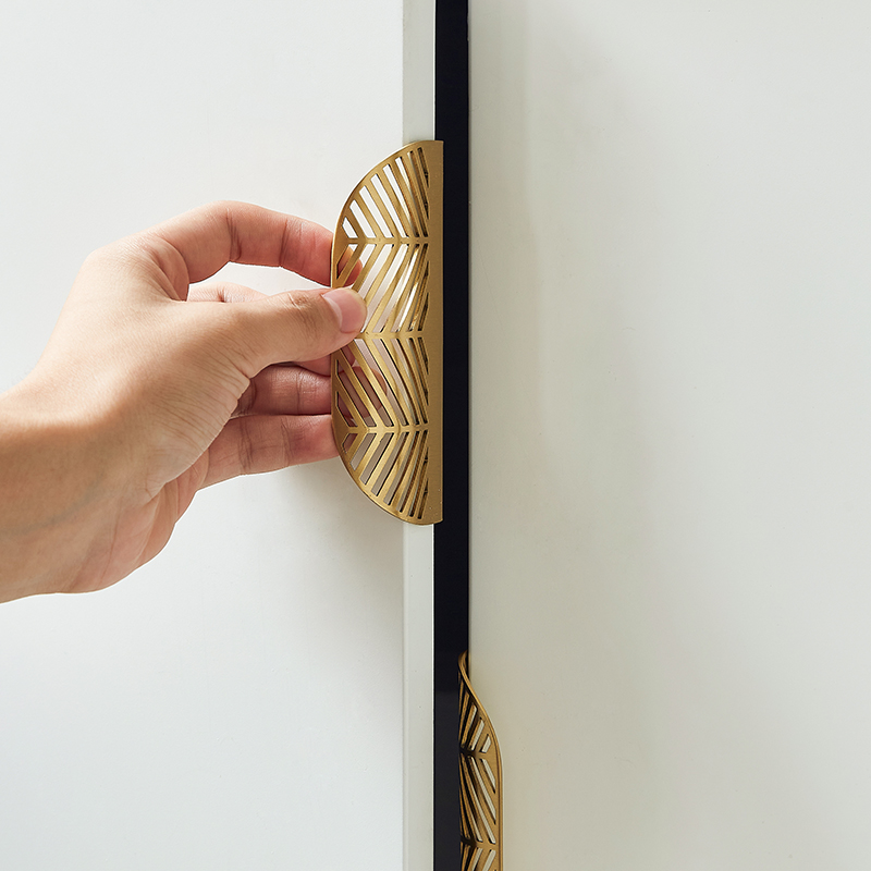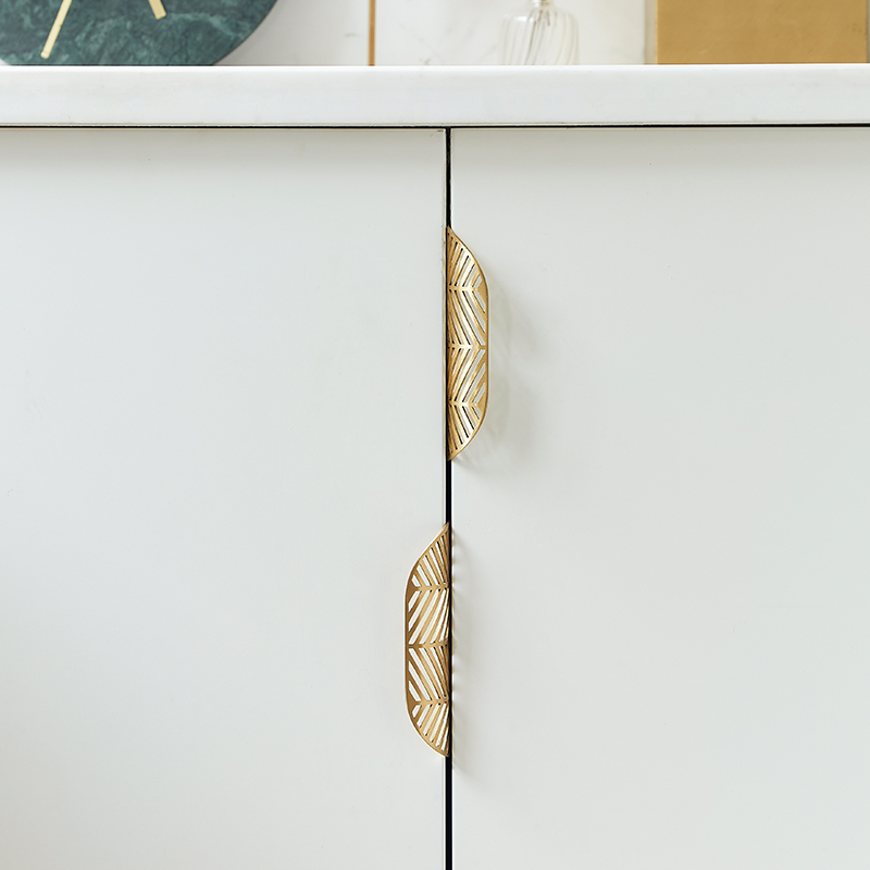 Brass leaf invisible handle Nordic modern minimalist overall cabinet drawer wardrobe door pure copper light luxury golden door handle