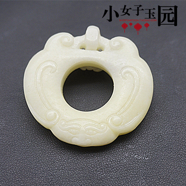 Antique animal pattern ring jade pei lantian jade lock-shaped jade pendant pendant neck ornament Hanfu waist with skeleton tassel accessories