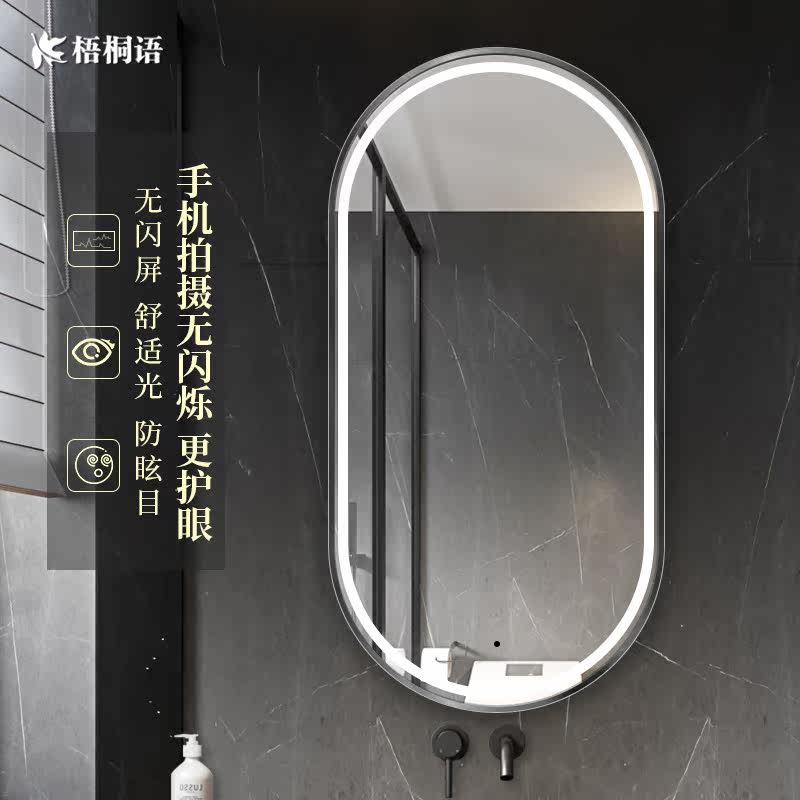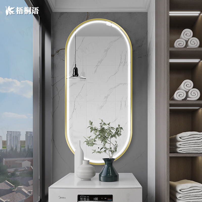 Oval-shaped smart bathroom mirror hanging wall-style toilet makeup mirror custom wall-strapped lamp LED mirror