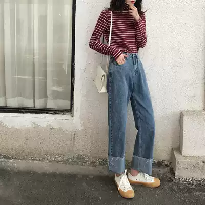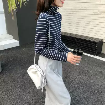 Crab alley cotton striped high collar base shirt 2019 autumn and winter New Leisure Joker long sleeve T-shirt women