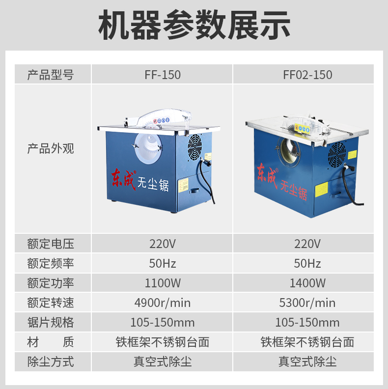 East Chengdu Dust-free Saw Multifunction Woodworking Bench Saw FF02-150 East City Small Push Bench Electric Saw Wood Floor Cutting Machine
