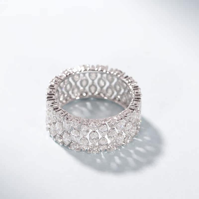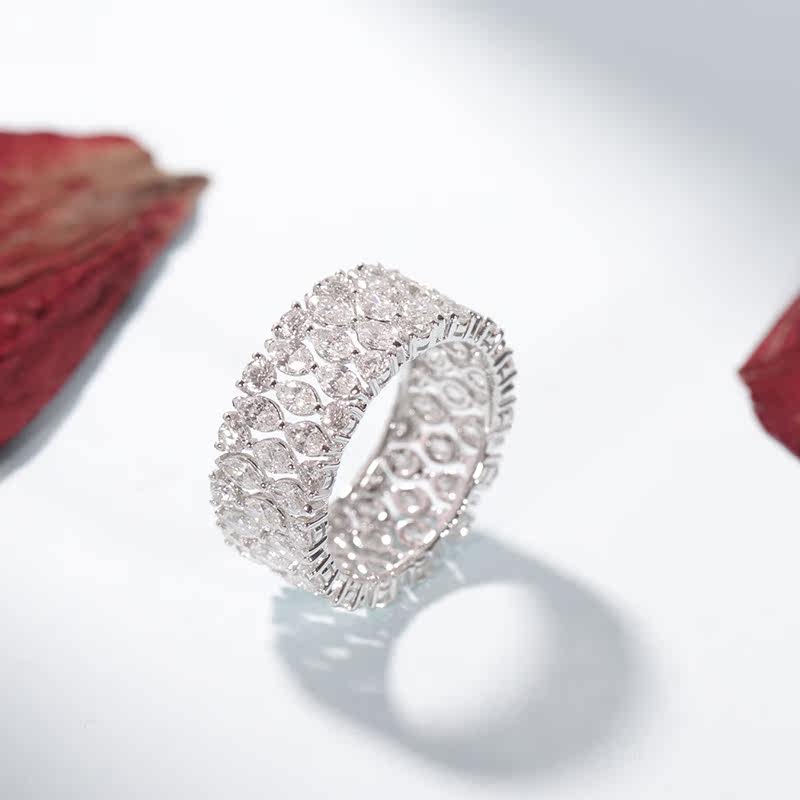 Wanlun Jewelry 18K white gold diamond ring 3 carat diamond ring luxury group inlaid horse eye row ring width shopkeeper recommended