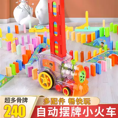 Domino train children's educational toys 3-6 years old 5 automatic delivery car electric licensing building blocks net celebrity