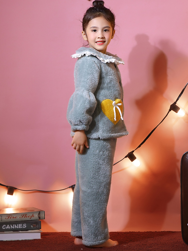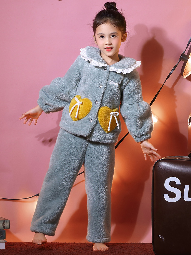 Girls Pajamas Coral Fleece Autumn and Winter Children's Baby Long-sleeved Thickened Parent-child Wear Flannel Homewear Set