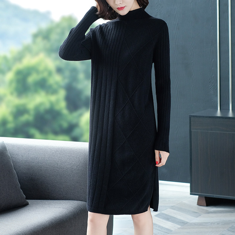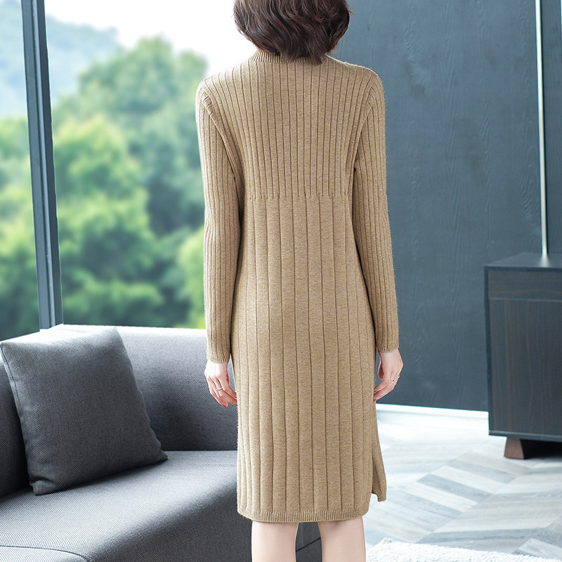 Sweater dress with coat long version knee-high autumn and winter 2021 new women's loose inner tie base knitted dress