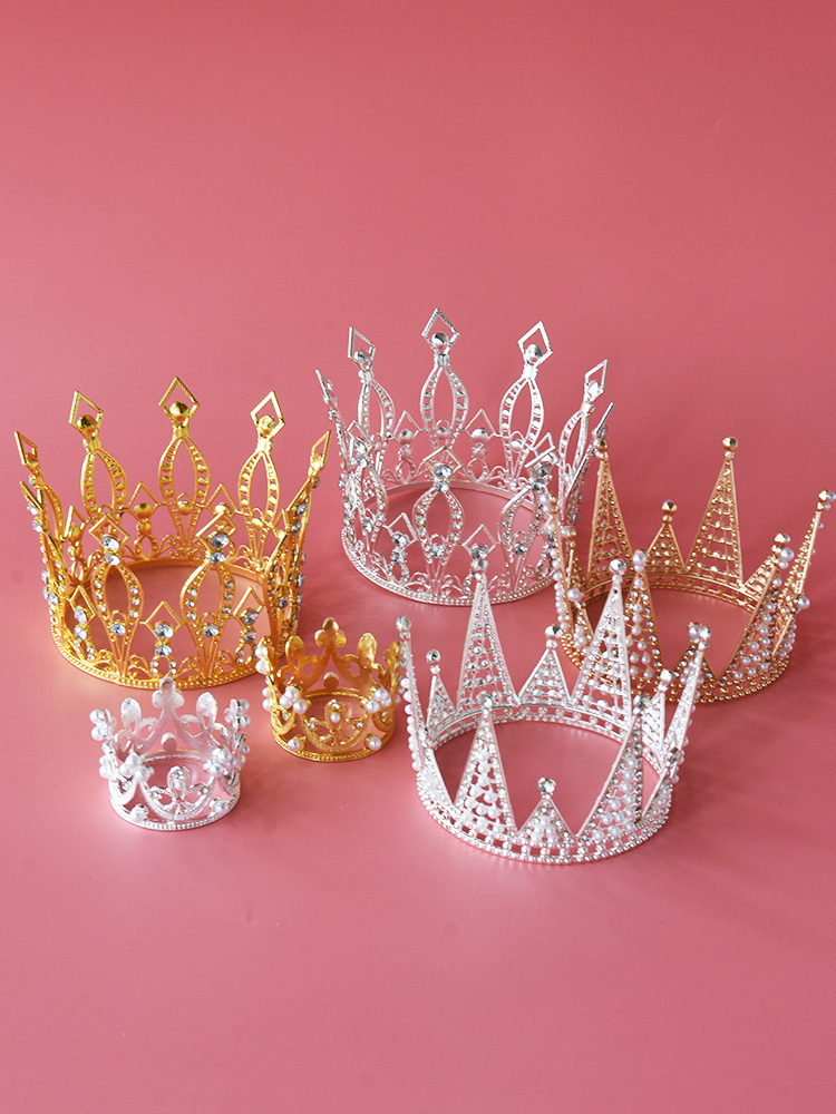 Net red small crown cake decoration decoration birthday adult queen children pearl crown plug-in headdress accessories