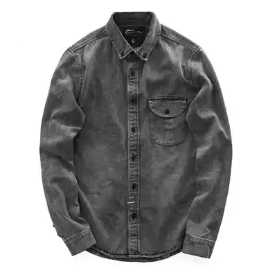 Autumn men's shirt new casual texture do old gray tide retro slim denim long sleeve shirt