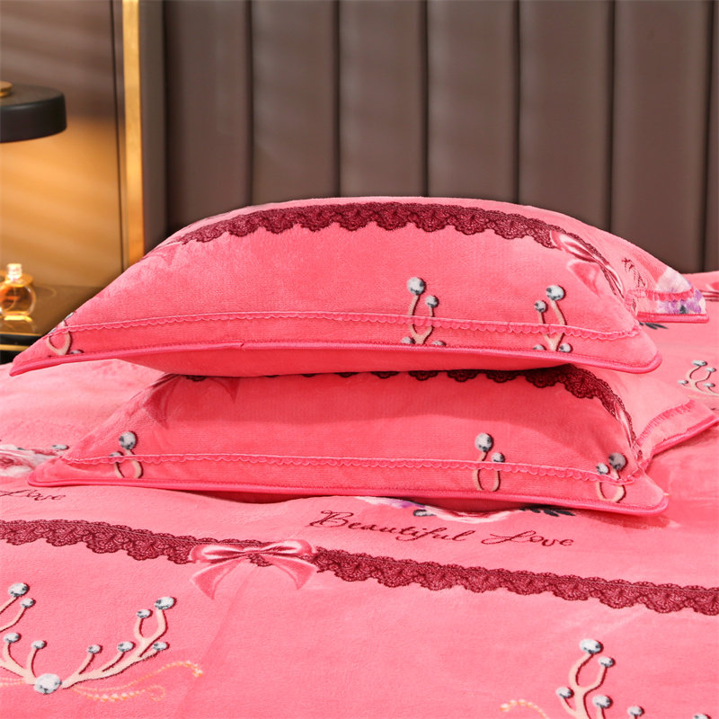 Thickened coral velvet four-piece winter flannel double-sided flannel quilt cover warm milk velvet bed skirt home
