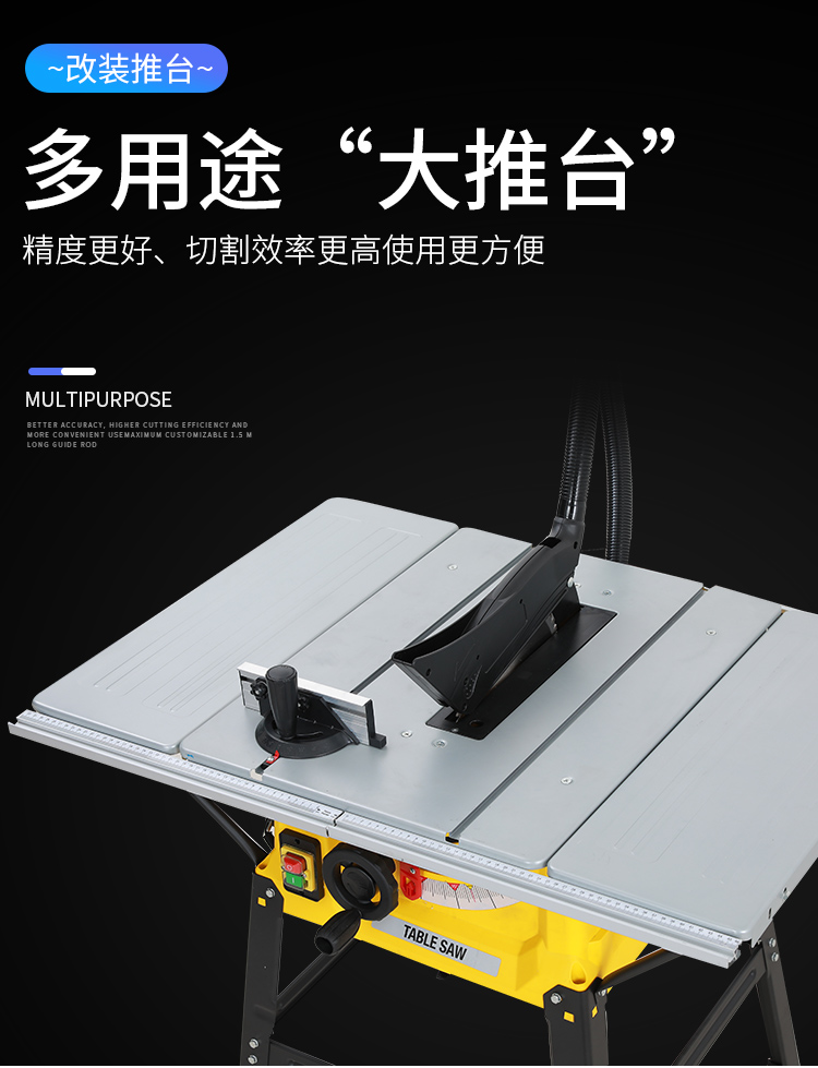 Hebei Hair 10 Inch Woodworking Push Bench Saw Multifunction Circular Saw Machine Cutting Machine Power Tools Precision Cut Board Floor Dust-free
