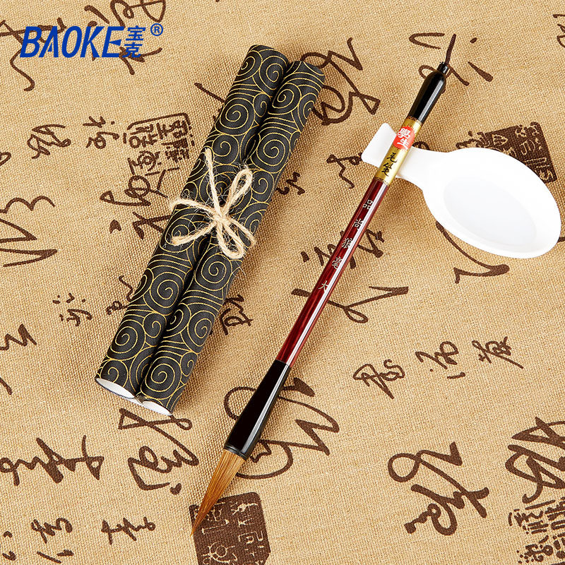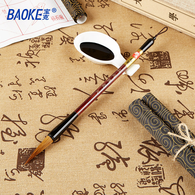 Baoke brush wolf hair and wool hair beginner adult gray mouse hair seal official line large, medium and small regular script calligraphy with pen beginners in regular script Chinese painting brush rat beard brush copy scripture pen soft pen