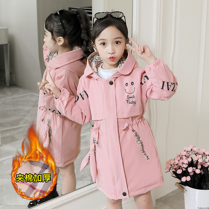 Girls' mid-length trench coat 2022 spring dress new medium and old children Korean version of the little girl thick coat 456789 years old