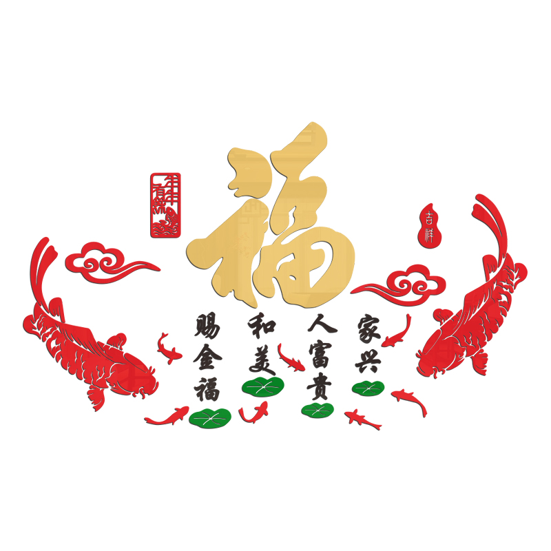 New Year fu characters Living room sofa TV background wall stickers painted bedroom stereo arrangement of wall face Spring Festival decorations