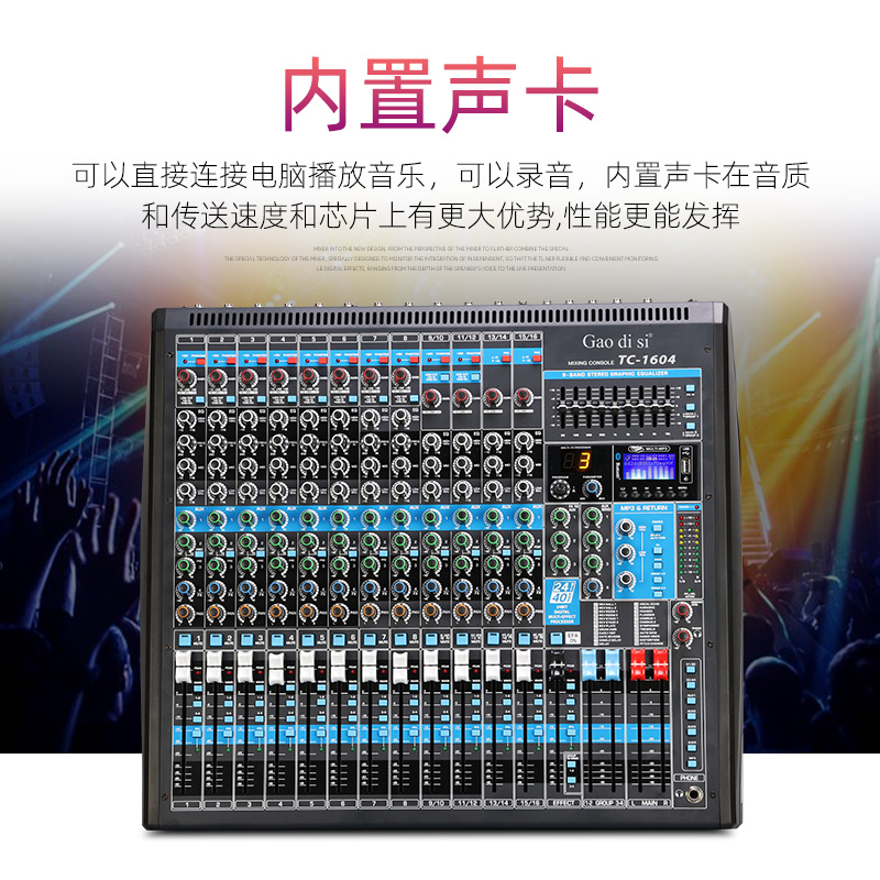 gaodisi professional digital large mixer 12 road 16 road 20 road effect fruit instrumental home performance outdoor stage wedding meeting ktv bar mixers built-in sound card Bluetooth live quadrumarshals