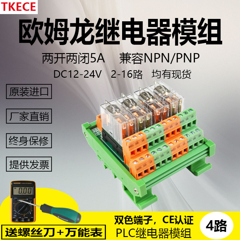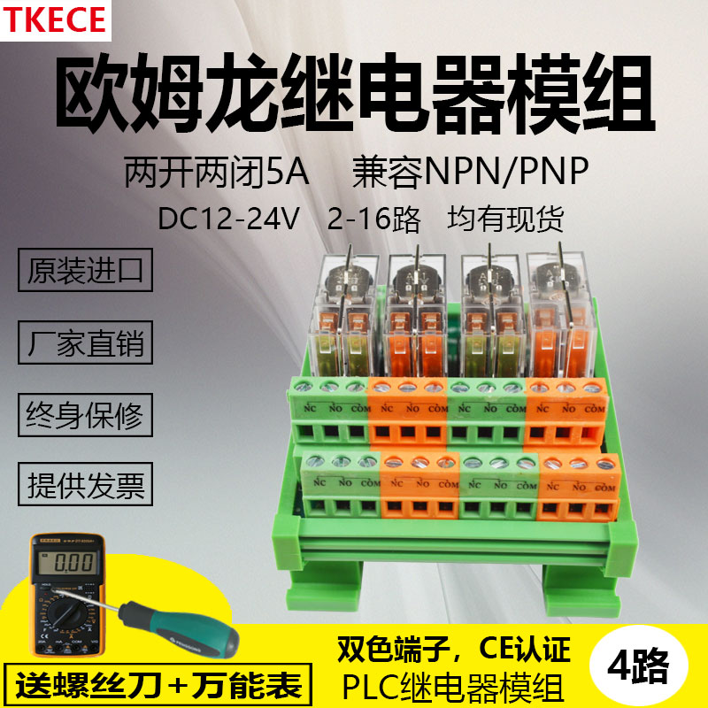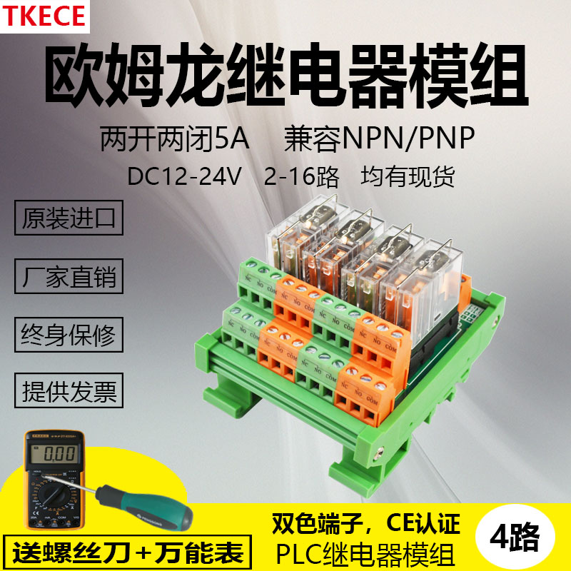 4-way 2-on-2-off OMRON relay module PLC module 24V 12V NPN PNP conversion type TKECE