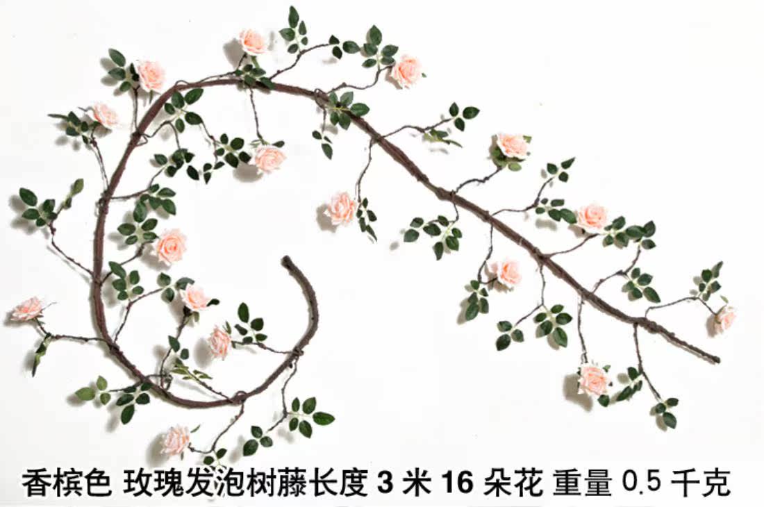 Simulation rose fake flower rattan green wall plant living room air conditioning pipe foam tree rattan Rose rattan high-end