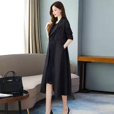 Windbreaker women's medium and long version 2021 new women's spring and autumn fashion Western temperament over-the-knee long version of the coat jacket
