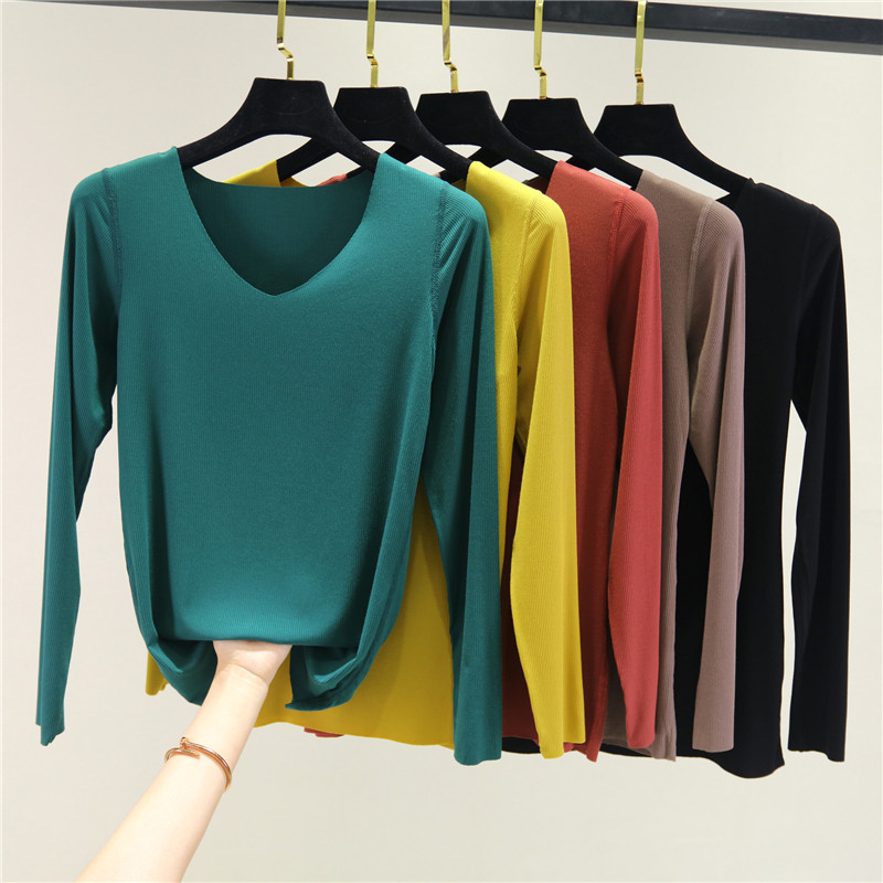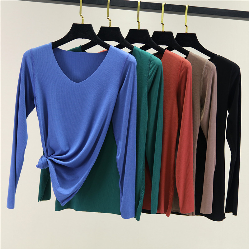 Modale long sleeve T-shirt female autumn winter slim fit without scar V neckline with undershirt thin undershirt knitted blouse