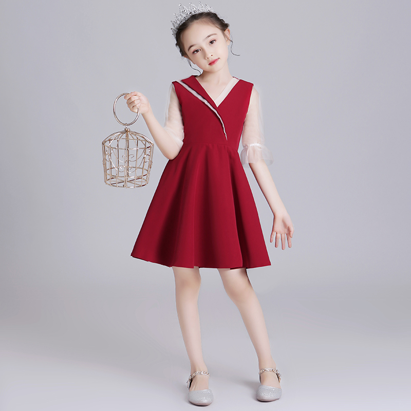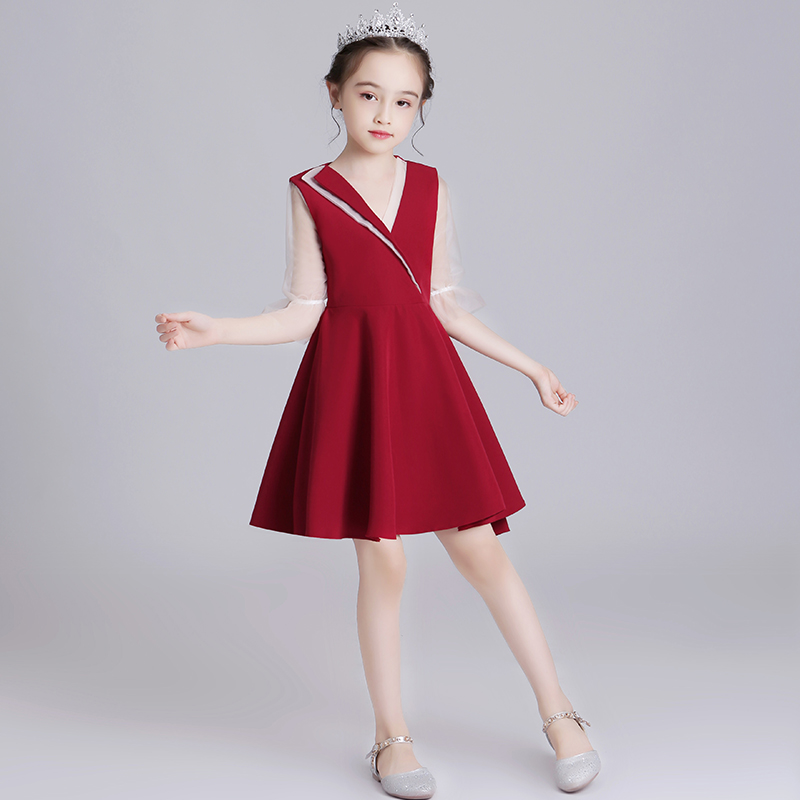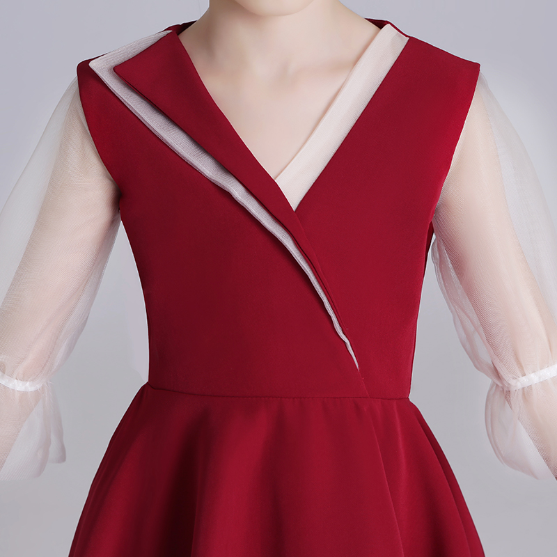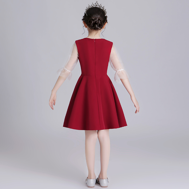 Girl Gown Dress Foreign Pie Red Princess Dress Temperament Children Flowers Children Walk Show Host Piano Show Evening Gown Winter