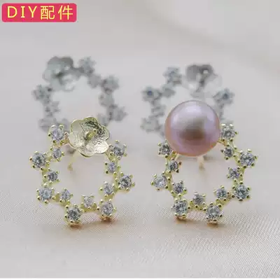925 pure white fungus pin support semi-finished Pearl diy accessories inlaid platinum earrings earrings for female earrings
