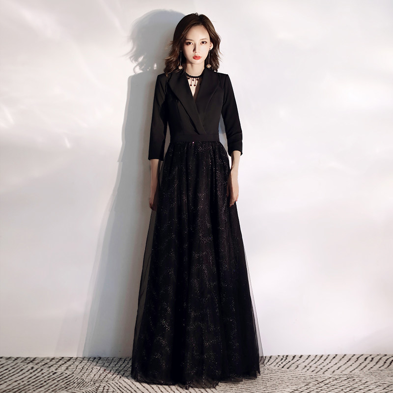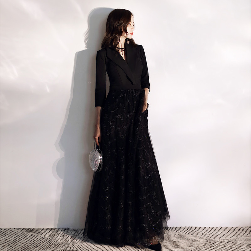 Evening dresses dress 2022 new noble names Banquets Banquet THIN PRESENTER WOMEN'S TEMPERAMENT BLACK SUIT ANNUAL MEETING ATMOSPHERE