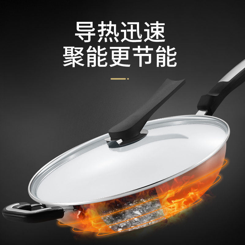 Home multifunction frying pan stainless steel without pan frying pan No oil smoke No coating pan induction cooker Gas applicable