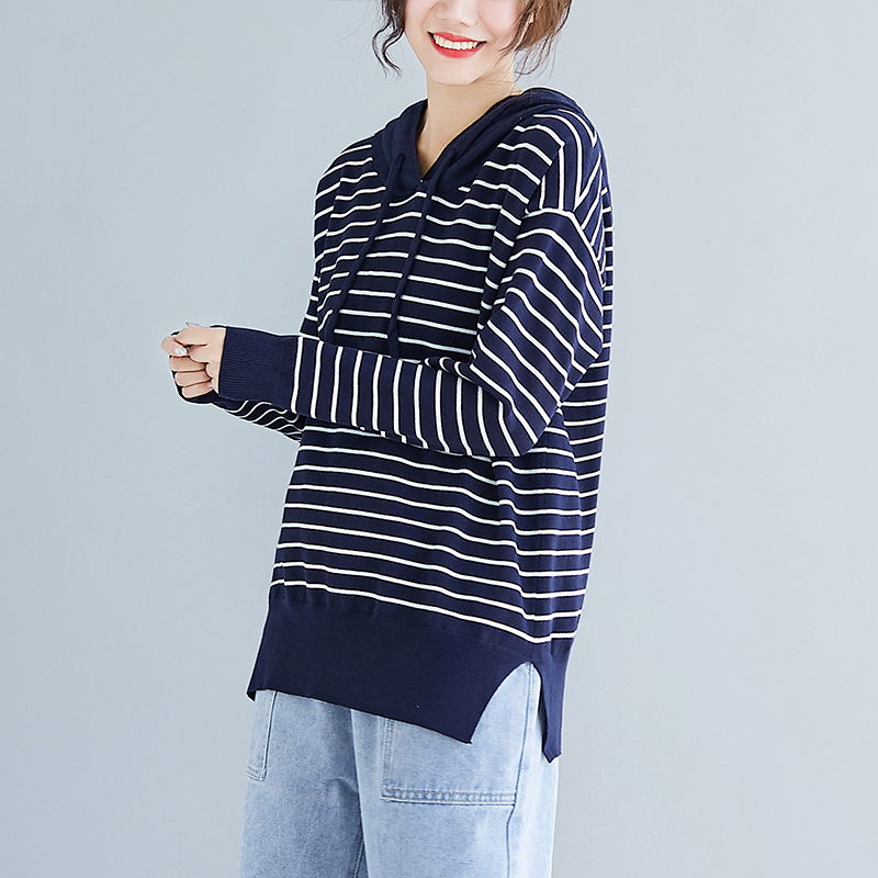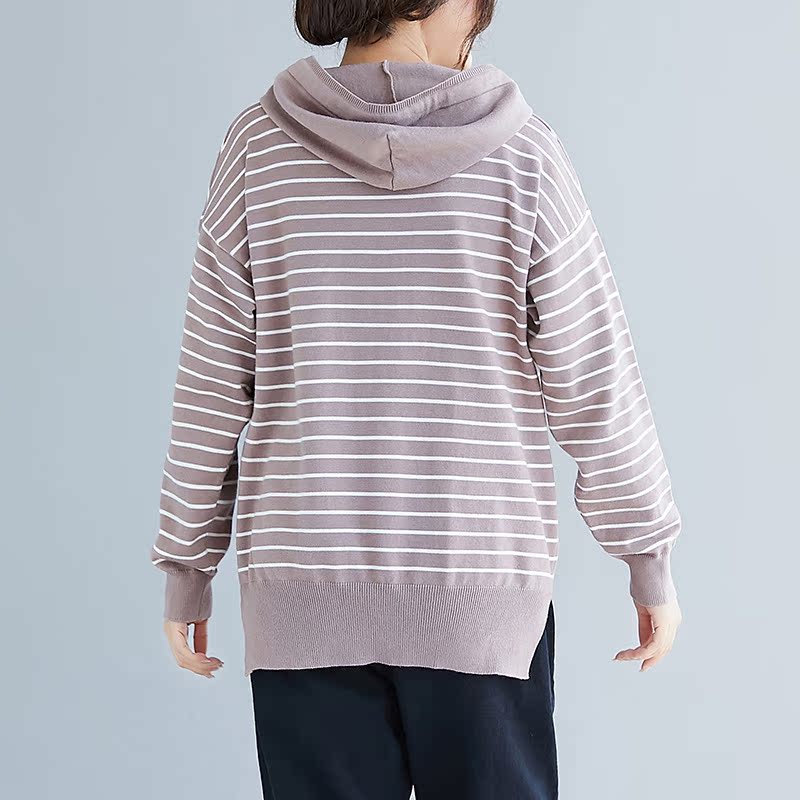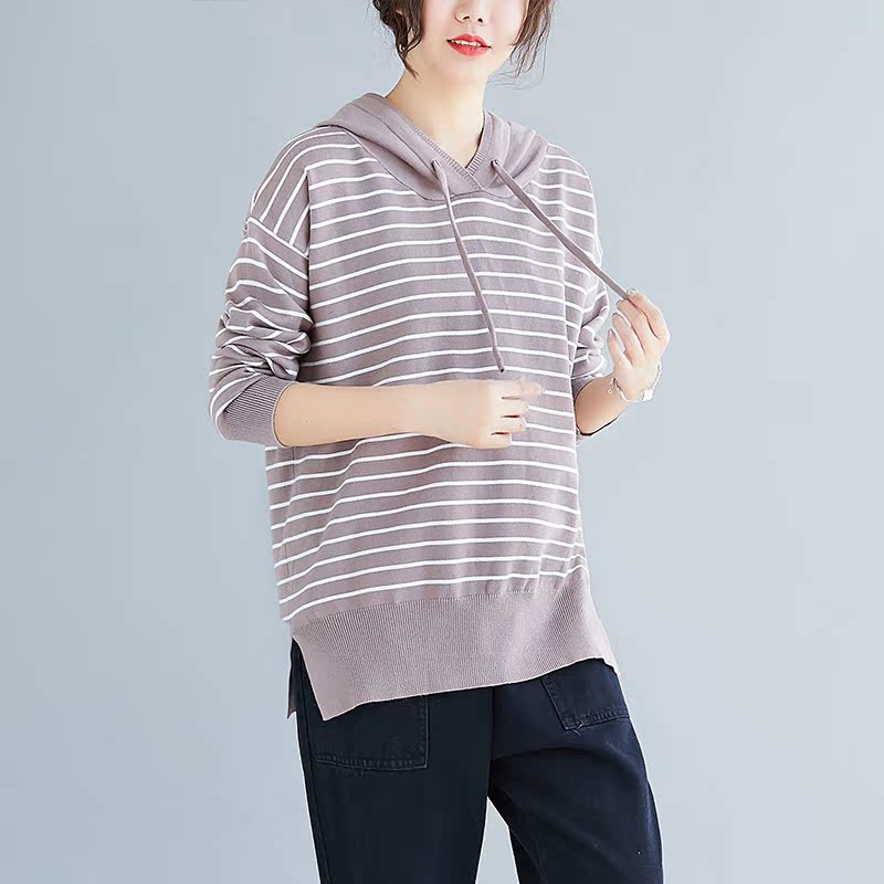 220 catty size for autumn clothing Fat mm women's clothing 240 Long sleeves Even hat sportswear 230 striped casual loose knit cardiovert 300