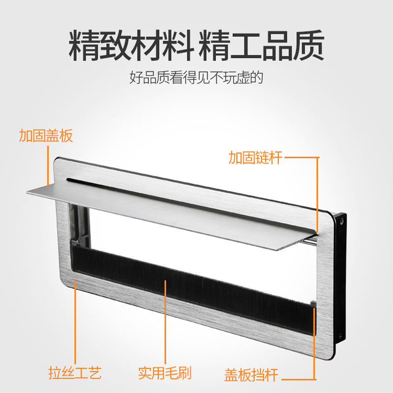 Desk With Hairbrush Aluminum Alloy Overwire Box Wiredrawing Black Silver Golden Damping Cushion Flip Wire Box Wire Hole Dress