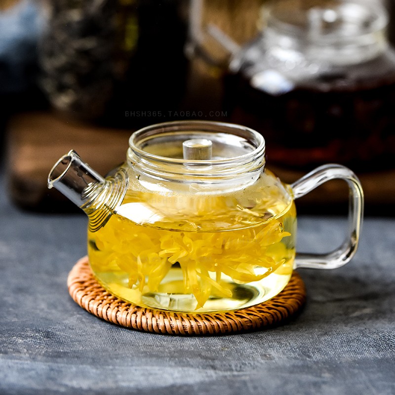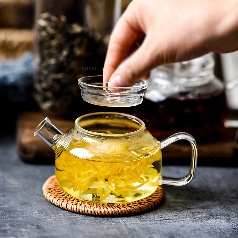 Handmade mini glass flower teapot transparent and heat-resistant glass small teapot high temperature resistant filter teapot power tea teapot
