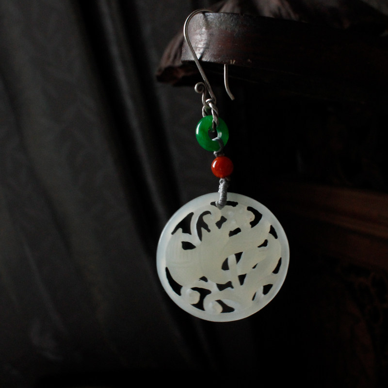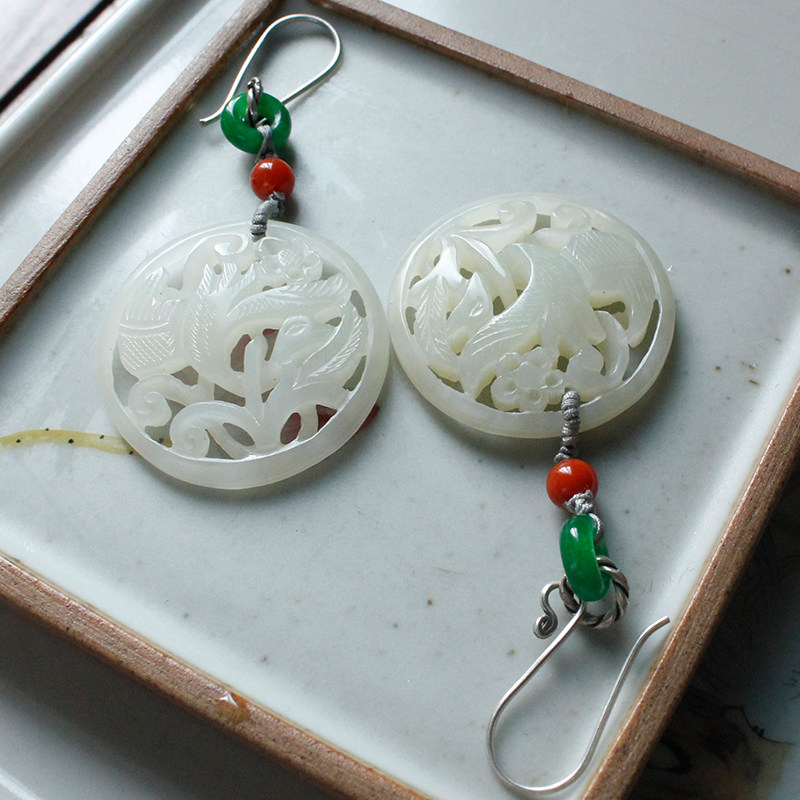 Strangeness of poetry (egrets) round and field jade earbuts customized