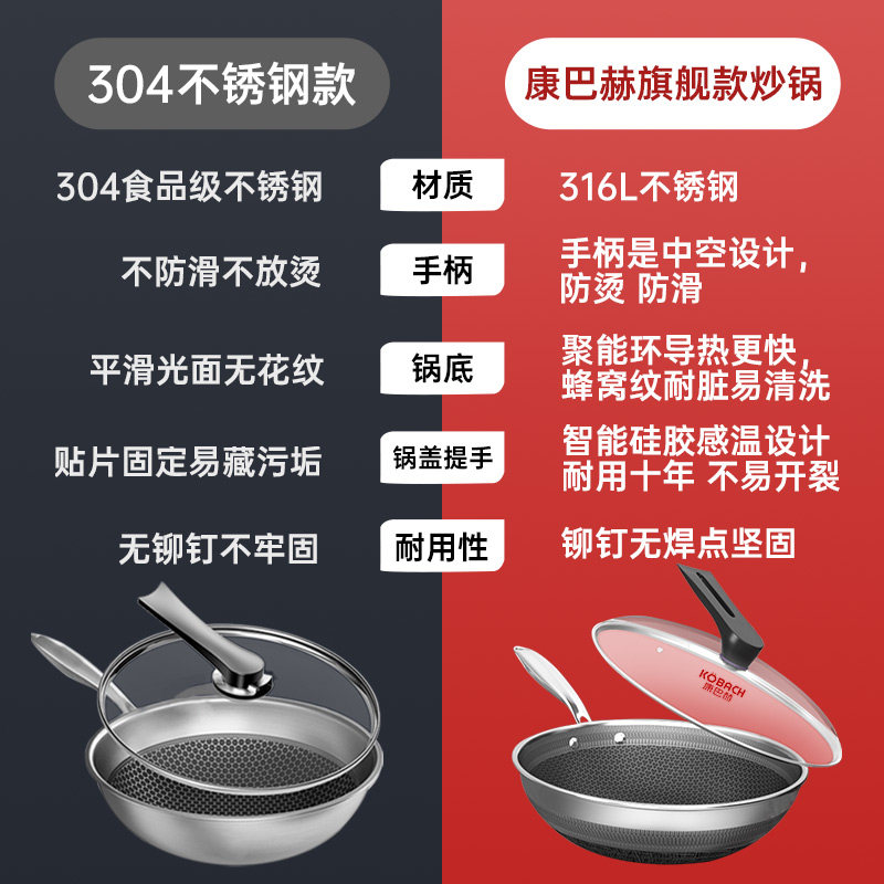 Combach official flagship wok double-sided screen 316L stainless steel honeycomb anti-stick induction cooker gas stove universal