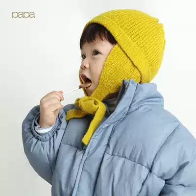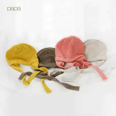 papa autumn and winter men and women baby wool blend wool hat baby warm ear protection child knitted lace hat