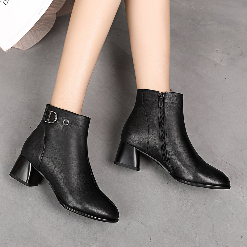 Short boots Women's autumn Winter 2020 new coarse heel Martin boots women's single boots Genuine Leather Boots 100 hitch Inn Girl boots