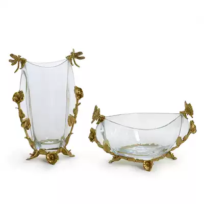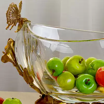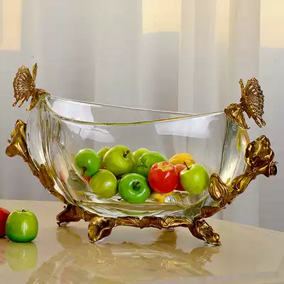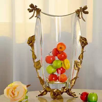 European-style crystal with copper half-moon-shaped fruit plate dried fruit plate high-end living room porch vase flower decoration fruit plate