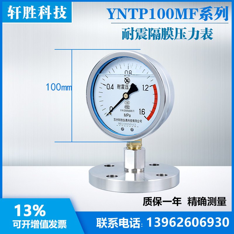 MF flanged diaphragm pressure gauge YNTP-100 DN20 seismic diaphragm gauge Seismic diaphragm pressure gauge