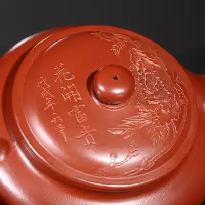 Yixing purple clay pot famous fan Zehong original mine Dahongpao flat pot kung fu tea set lettering