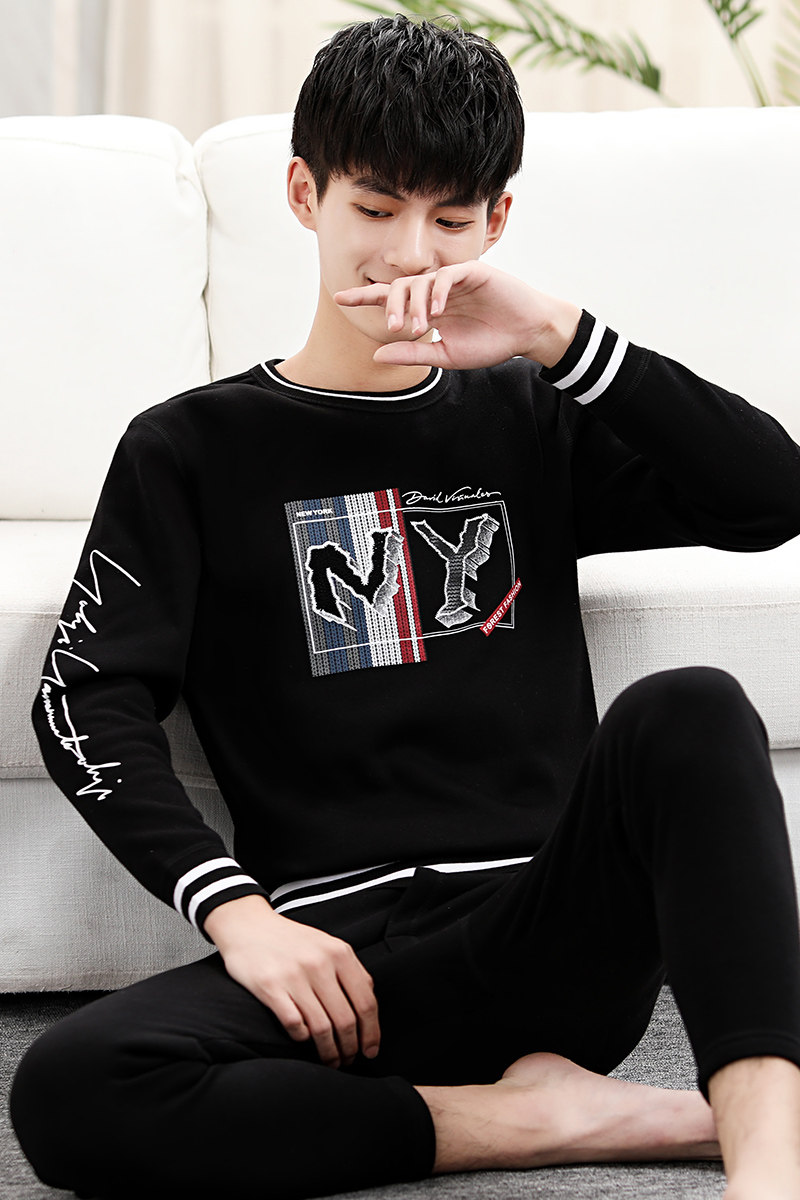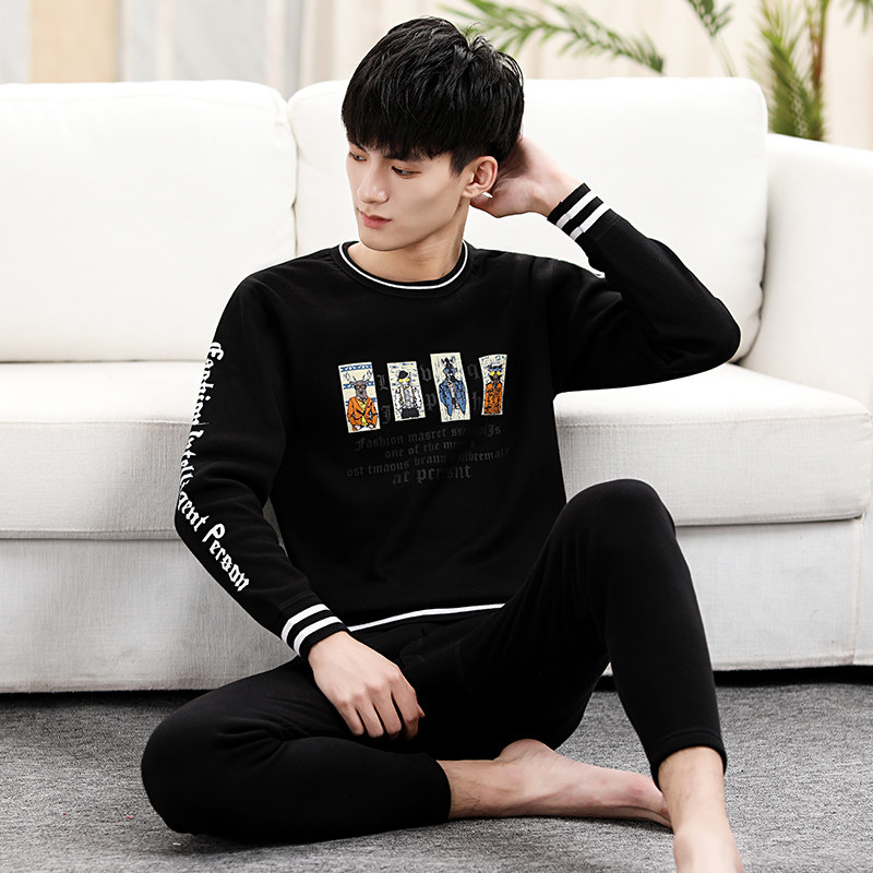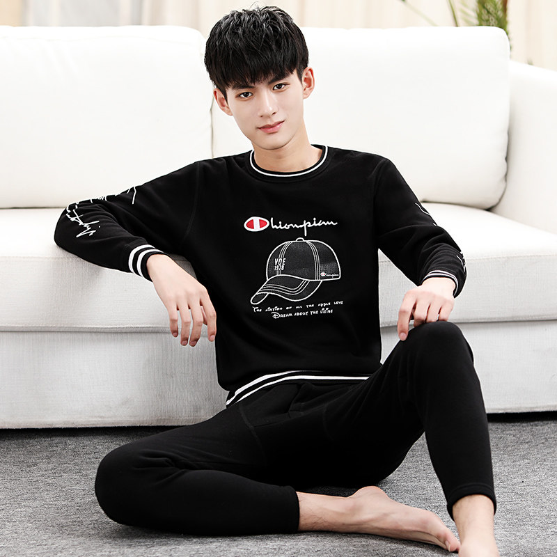 Hot clothes men's plus velvet thickening winter self-cultivation students Korean version of the tide youth large size men's autumn clothes sanitary pants suit