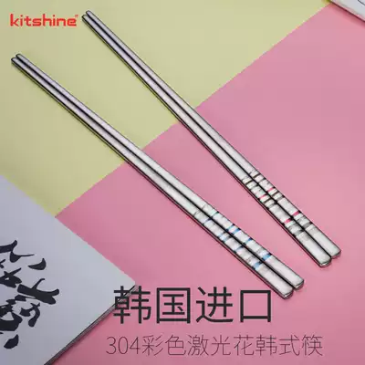 Korean chopsticks imported 18-10 stainless steel Korean flat chopsticks solid 304 household color laser baked flowers