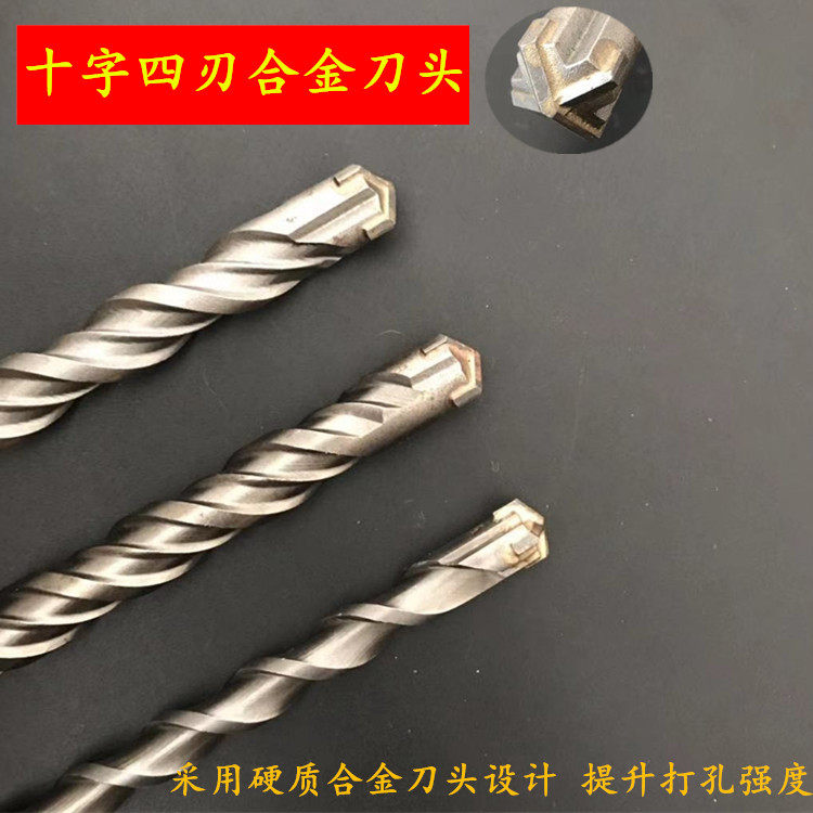 Electric hammer drill bit round handle two pits two grooves cross impact drill bit 6-20*200mm round handle four-edged concrete drill bit