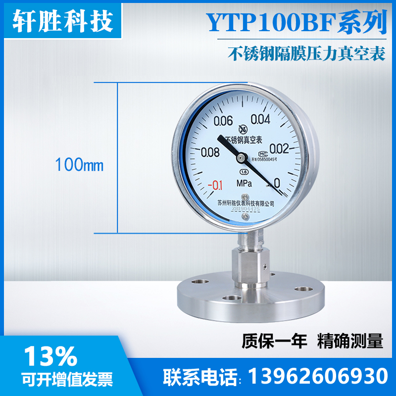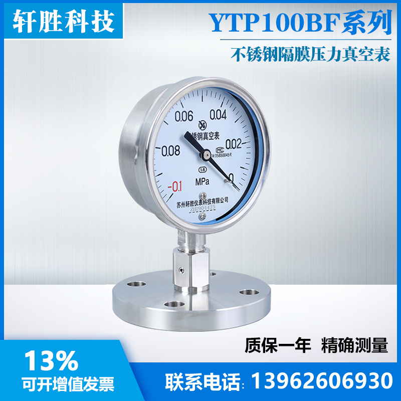 YTP100BF YTP100BF DN25 -0 1-0MPa stainless steel vacuum diaphragm sheet vacuum negative pressure diaphragm pressure meter