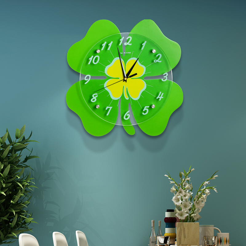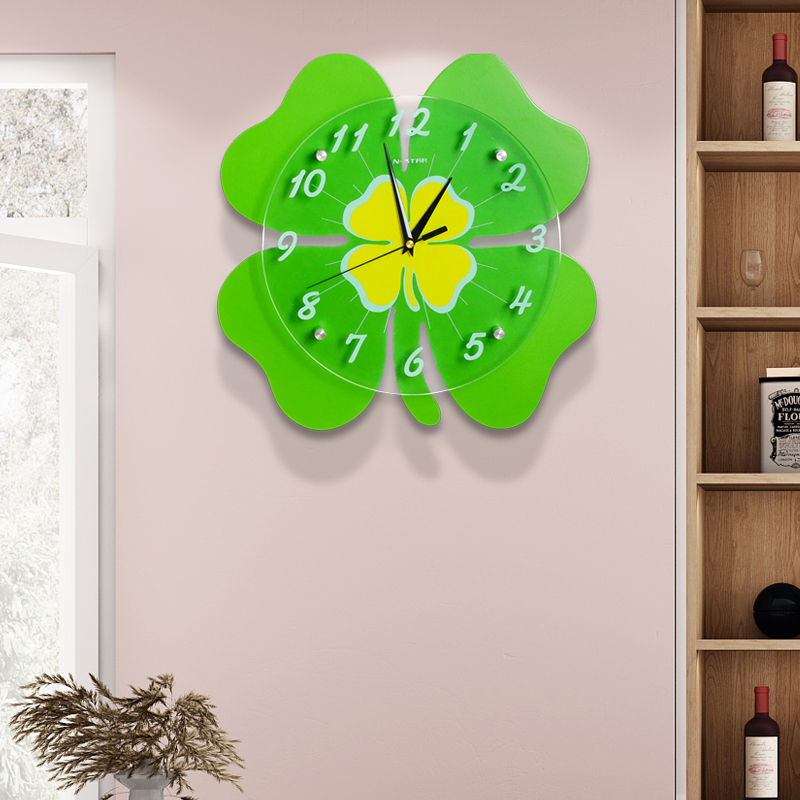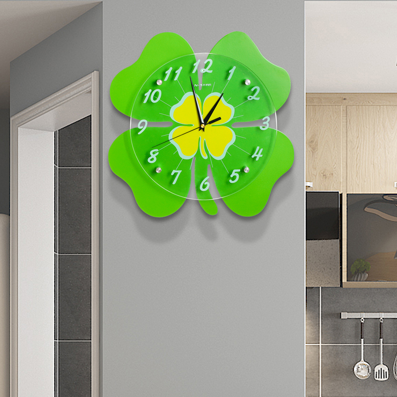 Four-leaf clover cute cartoon bedroom decoration mute wall clock modern minimalist fashion living room wall watch home clock