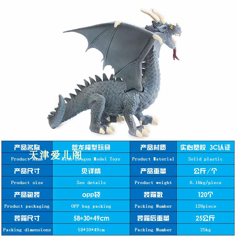 Emulation Dinosaur Solid PVC Plastic Blue Dragon Animal Model Toys Western Flying Dragon Hell Dragon