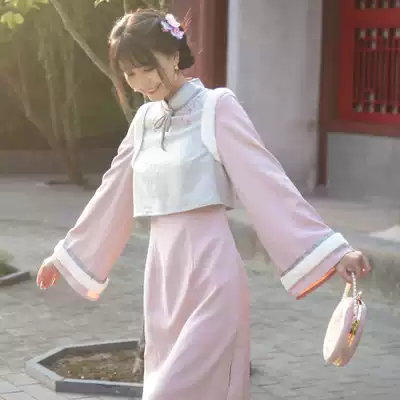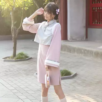 Chuan Dai: Yuanqing original design Republic of China style embroidery vest fake two pieces of autumn and winter improved cheongsam women