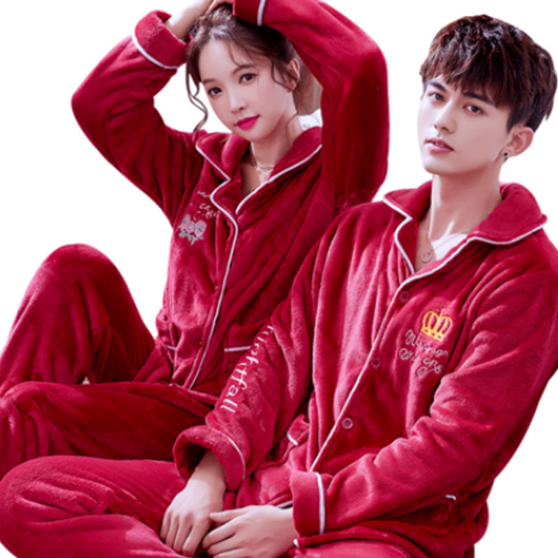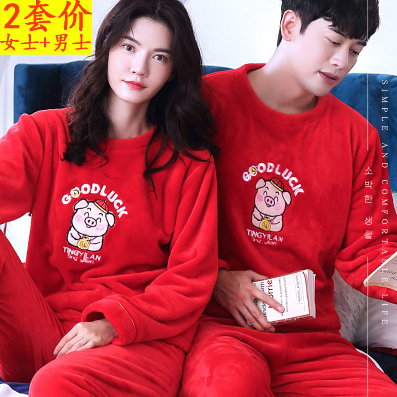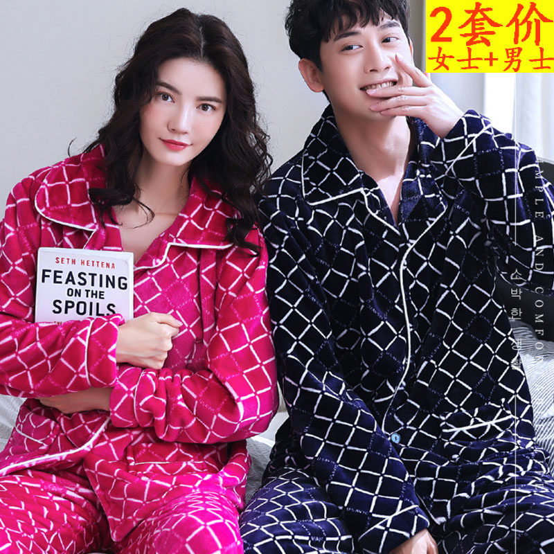 Couple sleeping clothes autumn and winter style cuddly two sets of price couple suit thickened flannel Korean version individuality fashion sleeping robe wave